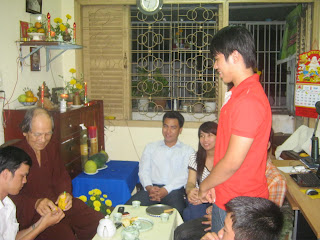 Thay mặt GĐPT bạn Bo đã chúc tết anh Thuần, sau lời chúc tết là một tiệc nước, bánh trái cây và trò chuyện rất vui vẻ của gia đình và đoàn GĐPT, hơn 10h cả đoàn rời nhà anh Thuần và kết thúc ngày chúc tết dành cho gia đình đoàn sinh của GĐPT chùa Bát Nhã.