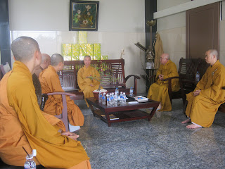 Kết thúc buổi lễ, là phần tọa đạm về những vấn đền Phật Giáo của năm 2011 và những phương hướng, kế hoạch của năm 2012 với sự trao đổi rất vui tươi, ấp áp của hội trường chùa Huê Nghiêm. Sau cùng đoàn cùng chụp ảnh lưu niệm với HT. Thích Trí Quảng.