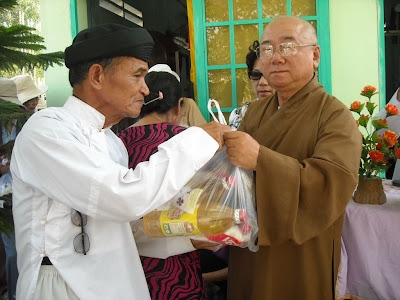 Và tại đây thay mặt cho ban từ thiện Chùa Bát Nhã HT. Thích Đạt Đao đã gửi lời thăm hỏi ân cần đến tất cả các PT trong thánh thất họ Đạo và gửi tặng 50 phần quà cho 50 hộ dân là PT tại đây.