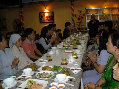 (Hôm nay cô Thiên Ý chiêu đãi cho tất cả đoàn nhân dịp khai trương thùng từ thiện)